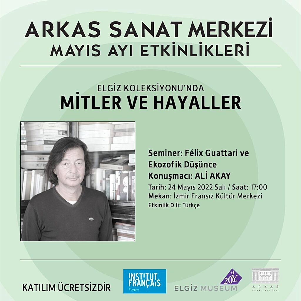 İlki 13 Mayıs’ta Arkas Sanat Merkezi’nde gerçekleşen etkinlikler serisinin ikincisi 24 Mayıs Salı günü saat 17:00’da İzmir Fransız Kültür Merkezi’nde gerçekleşti. Ali Akay’ın konuşmacı olarak katıldığı seminerde, “Elgiz Koleksiyonu’nda Mitler ve Hayaller” sergisinin çıkış noktasını oluşturan “Félix Guattari ve Ekozofik Düşünce” konusu ele alındı.